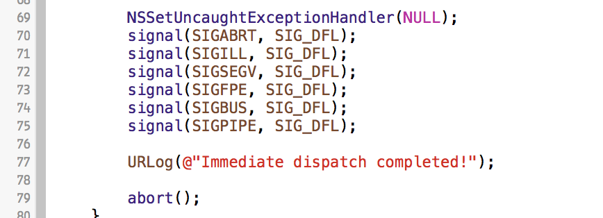 그리고 마지막으로 그 크래쉬 리포트를 전송 또는 저장한 후 abort()를 통해 앱을 종료시킨다.